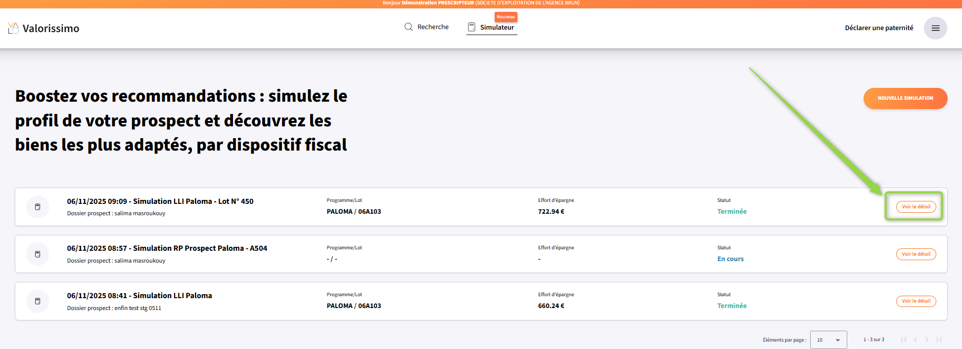 Vous retrouverez à tout moment via la lien simulateur de la page d’accueil l’ensemble de vos simulations.