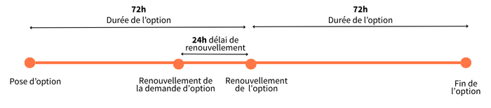 Une option est valable 72h à compter de la demande. L'option est renouvelable 1 fois.