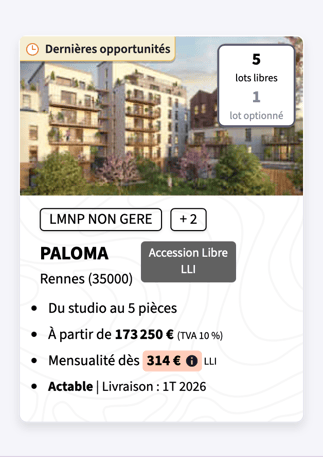 Vous pouvez voir les différentes fiscalités associées à un programme dans les encadrés noir comme montré ci-dessous (ici c'est LMNP non géré et quand on met le curseur sur “+ 2”, les autres fiscalités s’affichent) :